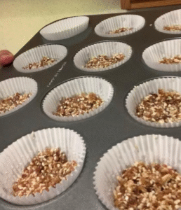 - Divide the crust evenly between the 8 muffin cups and pack it firmly down using your fingers.