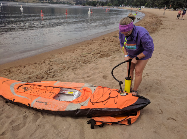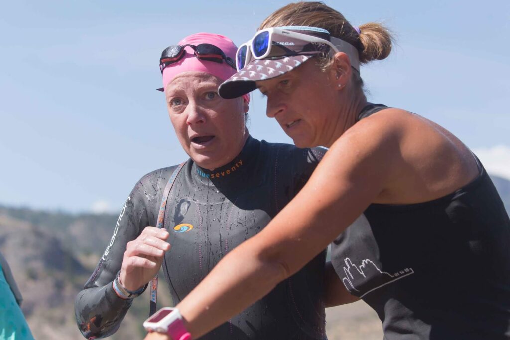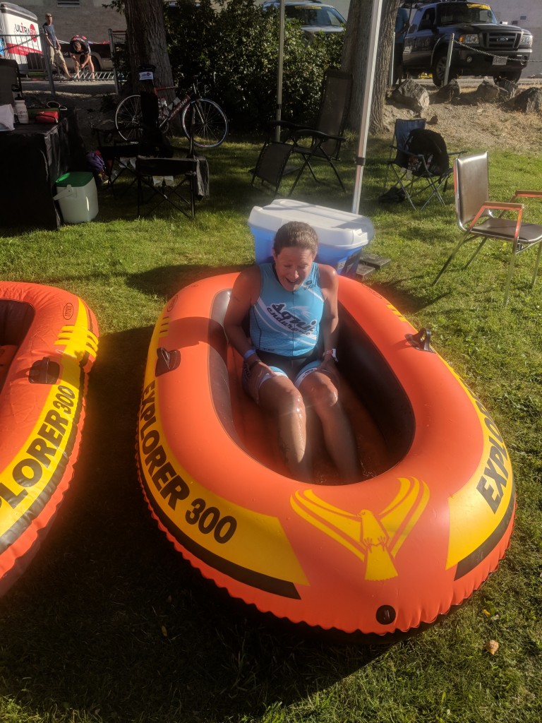 When Liz initially asked me to crew of course I said yes, it was a trip to Canada with my friends, how hard could it be? After reading more and more race reports I was asking myself “Why am I an idiot?” and “why did I agree to go?” I knew this was going to be hard and questioned my kayak abilities and how we would pull this off. I have racing experience but not to this level. I do have experience being prepared and organized as a Mom and you have to be as a triathlete since there’s so much involved. Fortunately my crew mate is also an experienced triathlete and Mom of four and one of my best friends, so I knew not only would we be ok once we got things prepared and organized but also have fun together. I’ve been asked after this experience multiple times if I would sign up for this race, HELL NO! Would I crew again? Yes, I would crew again if there were more than two people on the crew. Crewing is fun but it is hard work and exhausting. Your job is not over until your athlete is resting and you’re prepared for the next day. Thank you Liz for this experience.  I’m so happy we made it to the finish line all in one piece. I really enjoyed our adventure together in Lake Skaha, and meeting the other athletes and their crews.