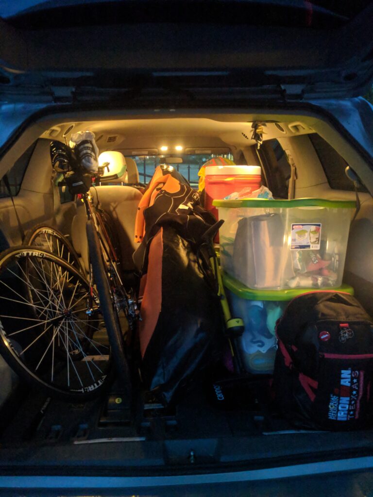We arrived in Penticton after 3 flights and a 3 am wake up out of Houston. Liz and her sister picked us up at the adorable airport in Penticton (so tiny!) and we got our rental minivan, which was to be command central for the race. (Thank you Sarah and Mark for the minivan!!!) An Ultraman distance race is completely self supported. Your vehicle is a traveling aid station and your crew is all your volunteer help. Pro tip: a minivan is the best vehicle to have. You can fold down the back seats and lay everything out. We were also able to fit a bike, a kayak, and all our gear and three people into it.
