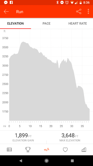 I tried to be entertaining without being annoying, to tell a few stories here and there but not be so chatty that it would bother her. And to just keep encouraging.  Stay positive. Tell her she could do it, that she was doing it! Just keep moving forward. When I hit 20 miles I looked at my time on my Garmin, hey! that was my longest run by 15 minutes. Then it was 26.6 miles…longest in distance…I started coming up with stupid Strava titles to try and make Liz laugh.  Then it was 31 miles. She said to me 2 times if you need to take a break you can, and I said no, I’m fine. And I was. I felt at this point a personal responsibility to see it through to the very end. The last 20km (12 miles) of this race were so hard. The gravel road was awful, so dusty and rocky and endlessly hilly. I was walking ahead of Liz and said “Do you want the good news or the bad news?”